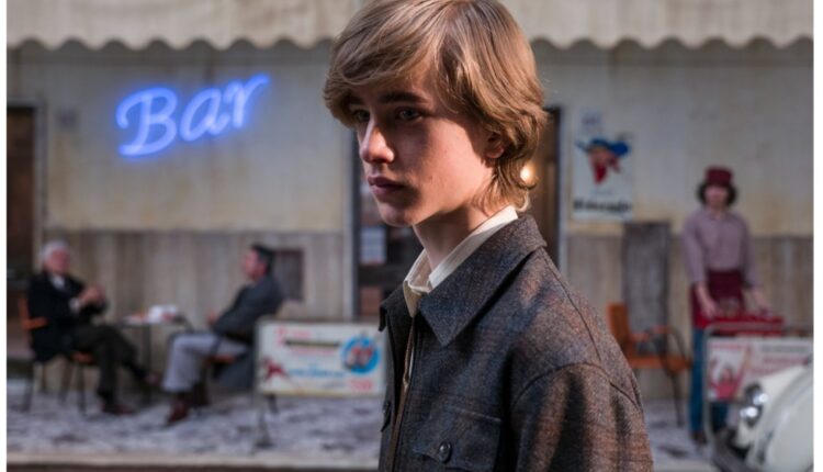 “Brunello: The Gracious Visionary” will feature re-enactments in which Cucinelli is played by several actors. The image above with the neon “BAR” sign features the actor Francesco Ferroni, while the younger actor in the wheat field (image below) is Francesco Cannevale.