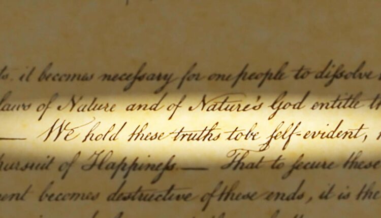 “We hold these truths to be sacred … ” Jefferson wrote in the first draft. Franklin crossed out “sacred” and wrote in “self-evident.” The declaration they were writing was intended to herald a new type of nation, one in which our rights are based on reason, not the dictates of religion.